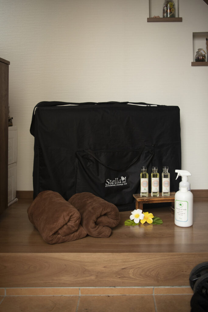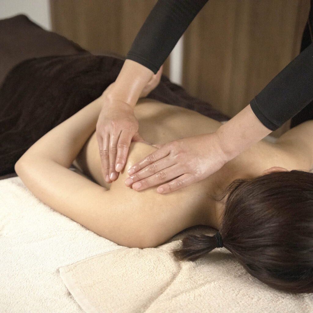 当店のリンパドレナージュは、器具などを一切使用せず、100%植物性ののオリジナルアロマオイルを使用しオールハンドにて施術を行います